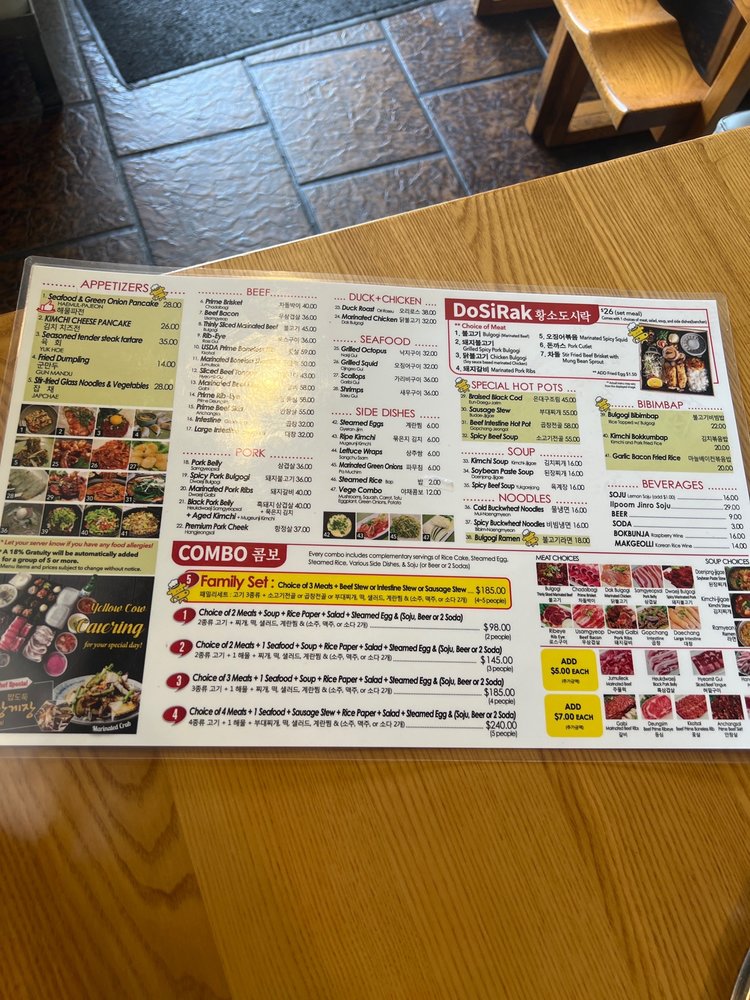 Yellow Cow Korean BBQ Restaurant offers a wide range of options for Barbeque, Korean cuisine, and soups. Located in Gardena, CA, it provides a casual dining experience with wheelchair accessible facilities and free Wi-Fi. The menu includes delectable appetizers like Seafood Green Onion Pancake and Japchae Noodles, along with a variety of additional items and drinks to choose from. Customers rave about the delicious food, friendly service, and the cozy atmosphere. The quality of meats, including prime rib, brisket, and scallops, receives high praise. The attentive staff and diverse banchan selection add to the overall dining experience. If you're looking for top-notch Korean BBQ in Southern CA, Yellow Cow Korean BBQ Restaurant is a must-visit spot.